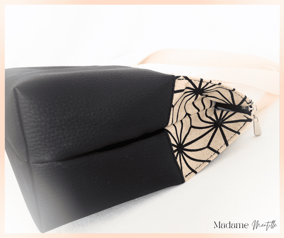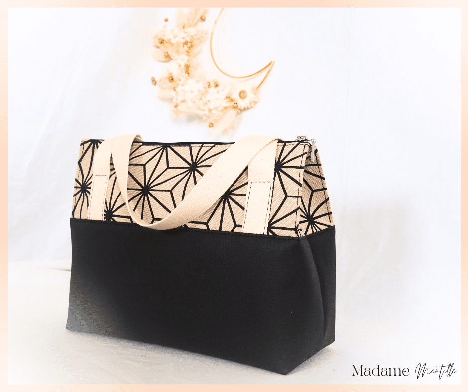 Ses tissus : Simili cuir noir - Coton imprimé géométrique