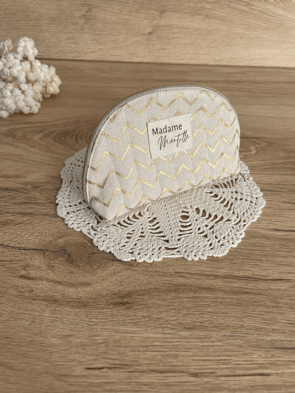 Pratique et pleine de charme, la Pochette Berlinguette vous accompagnera partout ! Réalisée dans un coton effet lin aux zig-zag dorés, elle apportera une touche élégante à votre quotidien.