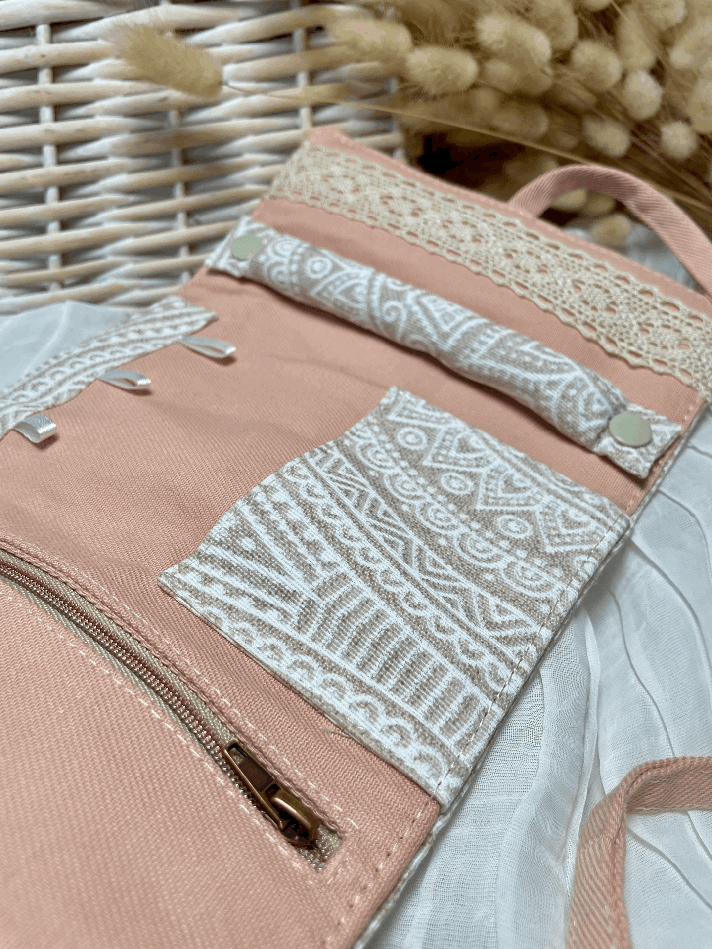 Gardez vos Bijoux bien rangés et protégés grâce à cette jolie Pochette à bijoux. Alliant praticité, charme et douceur, elle est idéale pour voyager avec style ou simplement pour organiser vos trésor au quotidien.