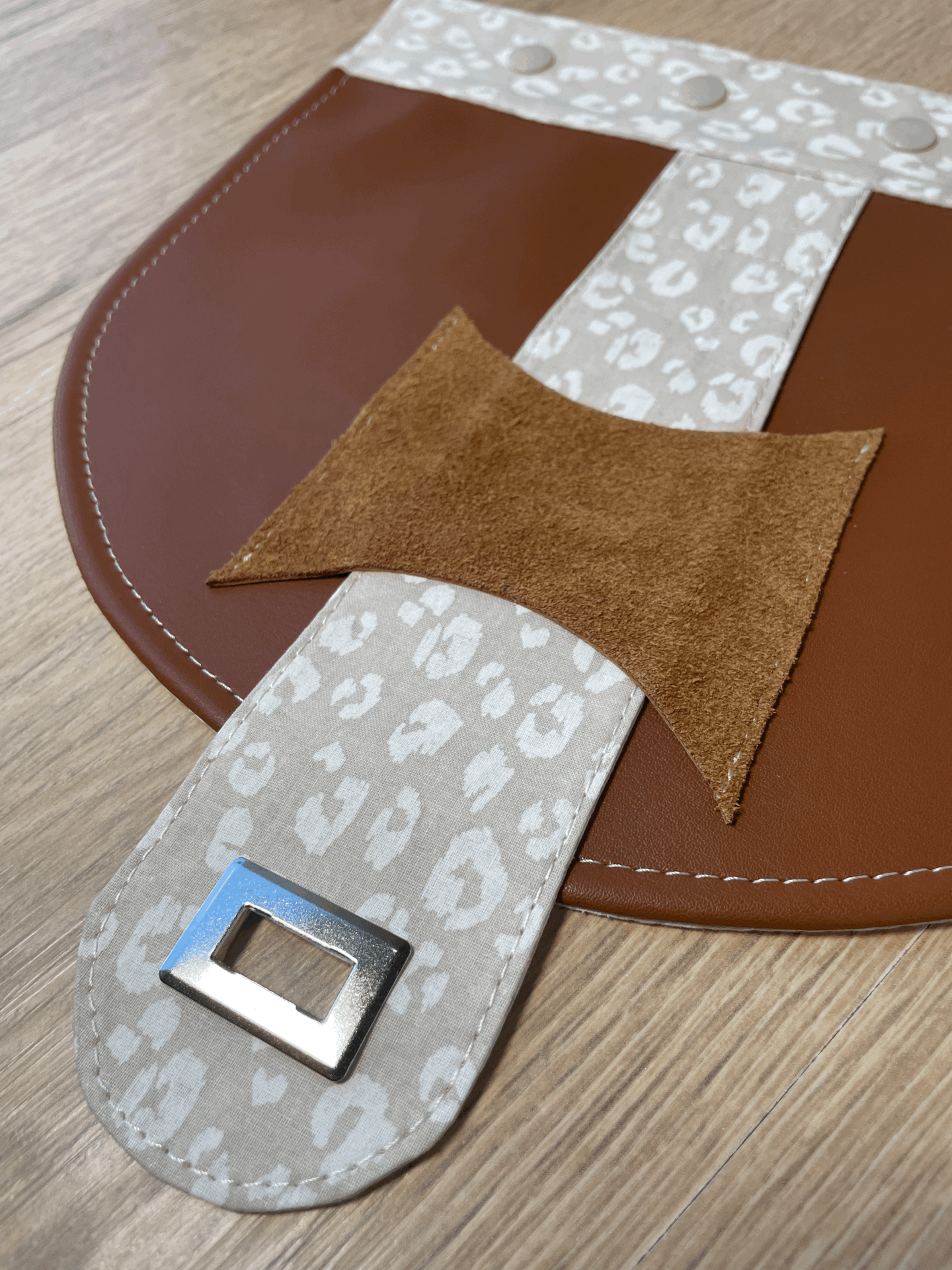 Le rabat se clipse et se déclipse facilement sur le Sac Claudette à l'aide de 4 pressions en résine.