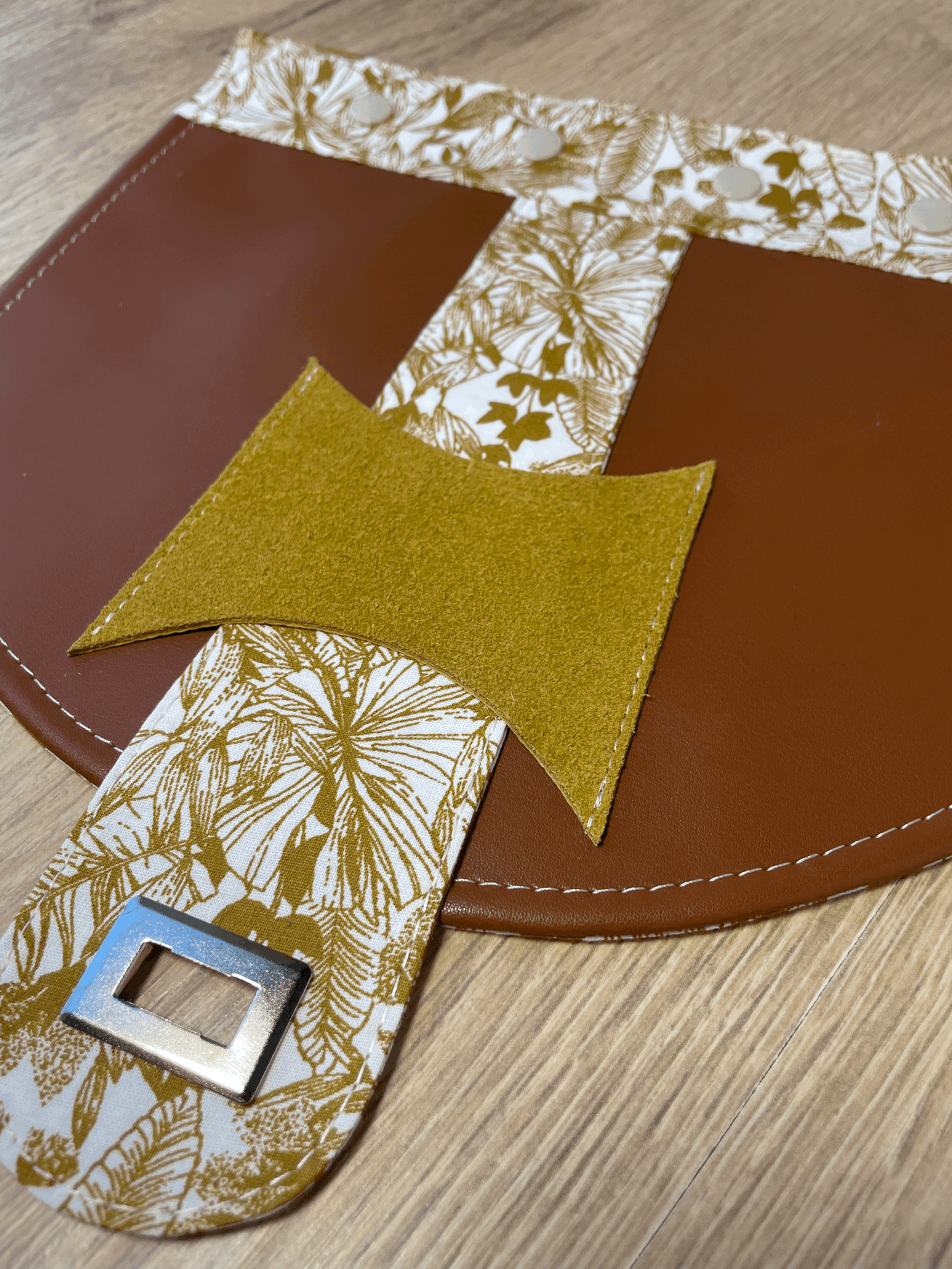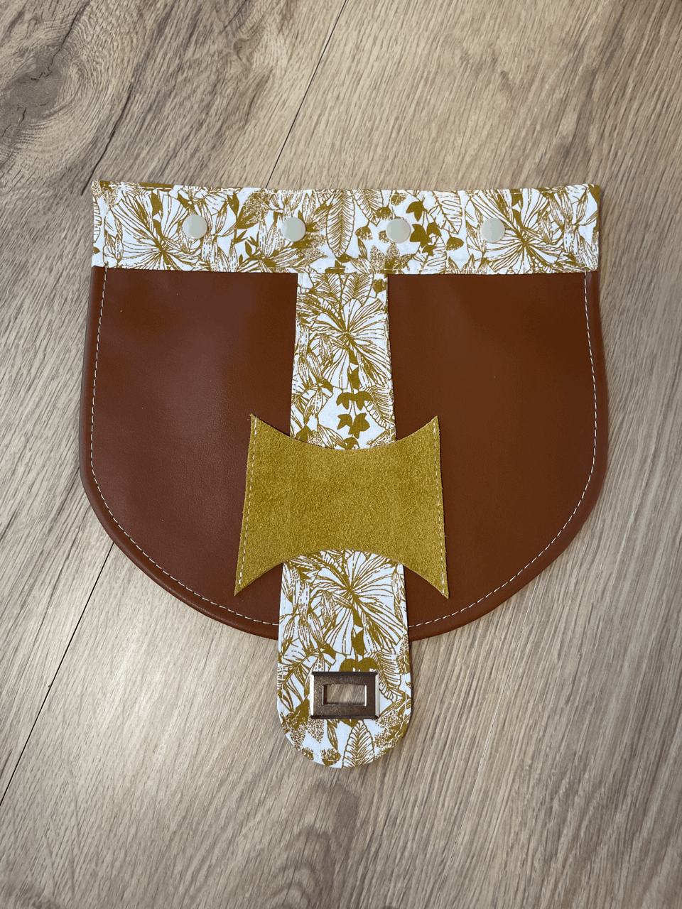 Le rabat se clipse et se déclipse facilement sur le Sac Claudette à l'aide de 4 pressions en résine.